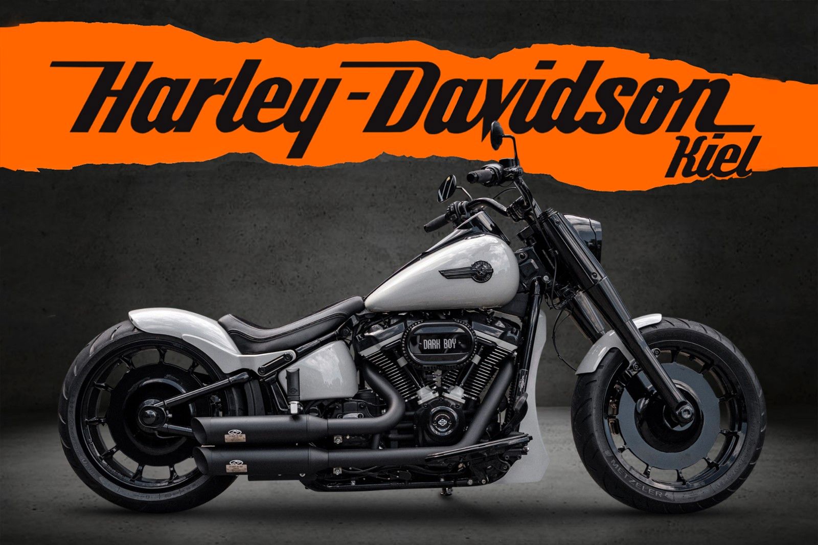 Die Ikone der Fat-Custom-Szene. Mit wuchtiger Präsenz und dominanter Attitüde. Nach wie vor ist die Fat Boy 114 eines der optisch beeindruckendsten Bikes im Harley-Davidson-Portfolio. Dieser herausragende Harley-Kiel Umbau macht die Fat Boy zu einem richtigen Dark Fat Boy! In Puncto Ausstattung, Lackierarbeiten und Performance haben wir hier sämtliche Register gezogen und eine Ikone zur Legende gemacht. Exklusive Features des Dark Fat Boy Harley-Kiel Umbaus: