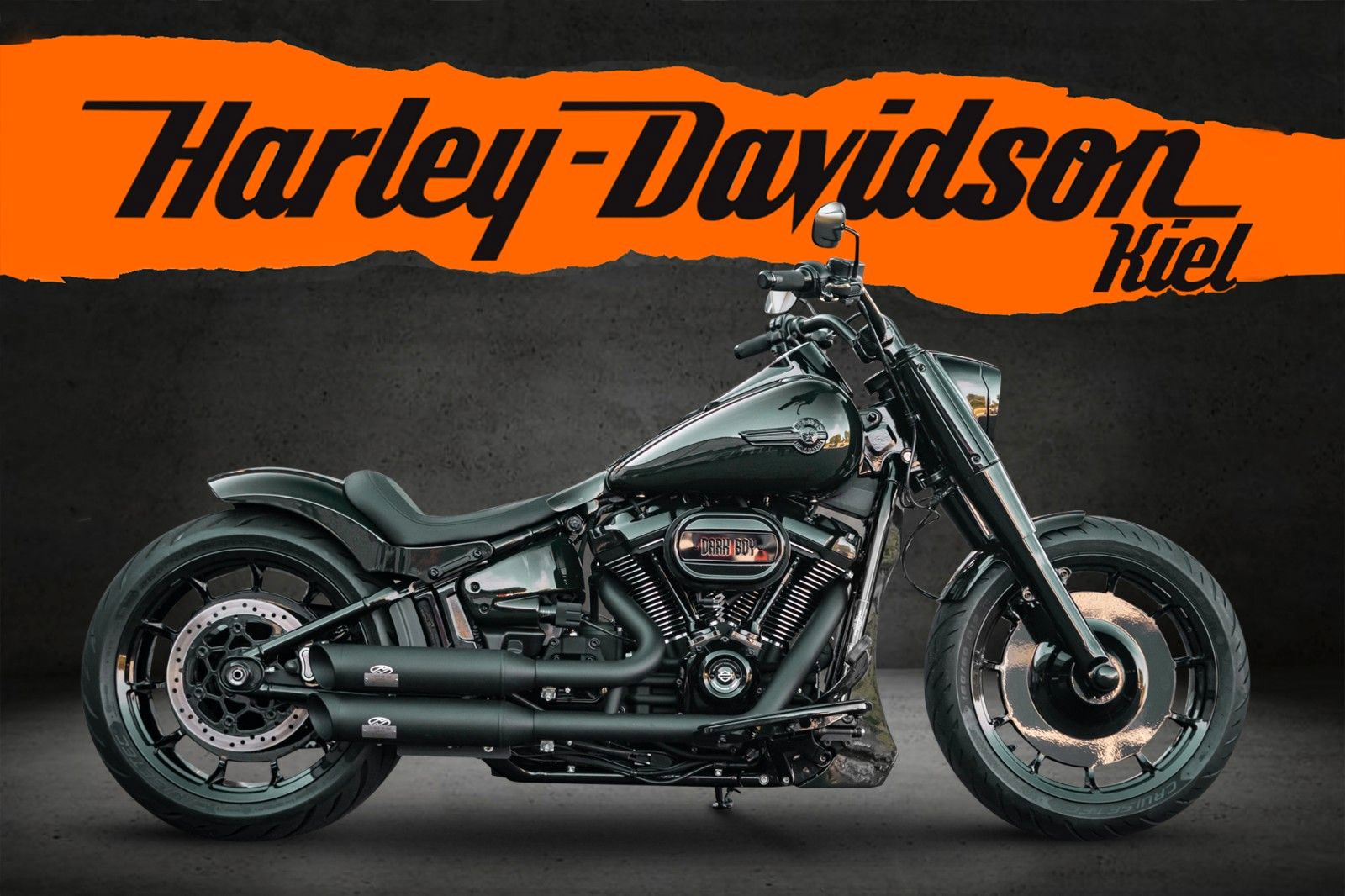 Die Ikone der Fat-Custom-Szene. Mit wuchtiger Präsenz und dominanter Attitüde. Nach wie vor ist die Fat Boy 114 eines der optisch beeindruckendsten Bikes im Harley-Davidson-Portfolio. Dieser herausragende Harley-Kiel Umbau macht die Fat Boy zu einem richtigen Dark Fat Boy! In Puncto Ausstattung, Lackierarbeiten und Performance haben wir hier sämtliche Register gezogen und eine Ikone zur Legende gemacht. Exklusive Features des Dark Fat Boy Harley-Kiel Umbaus: